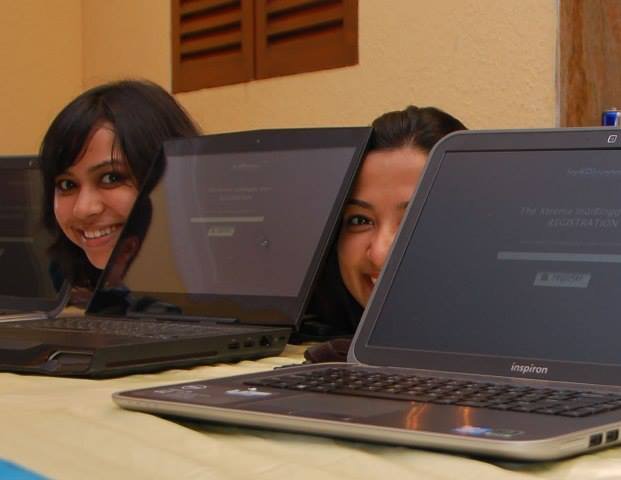 Swati and Nanny at the registration desk