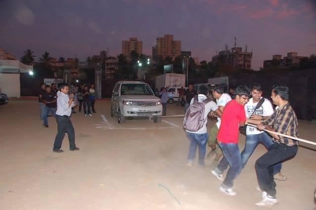 All bloggers were split in to five teams of 20-25 (Sorry Nihal, I still did not think they all had only 20 – from what they looked to me, some had about 30 too!) and were given a task. A Tata Safari is a heavy beast, and who in this world can think of taming it with a rope? The Bloggers can do! But it was certainly difficult.